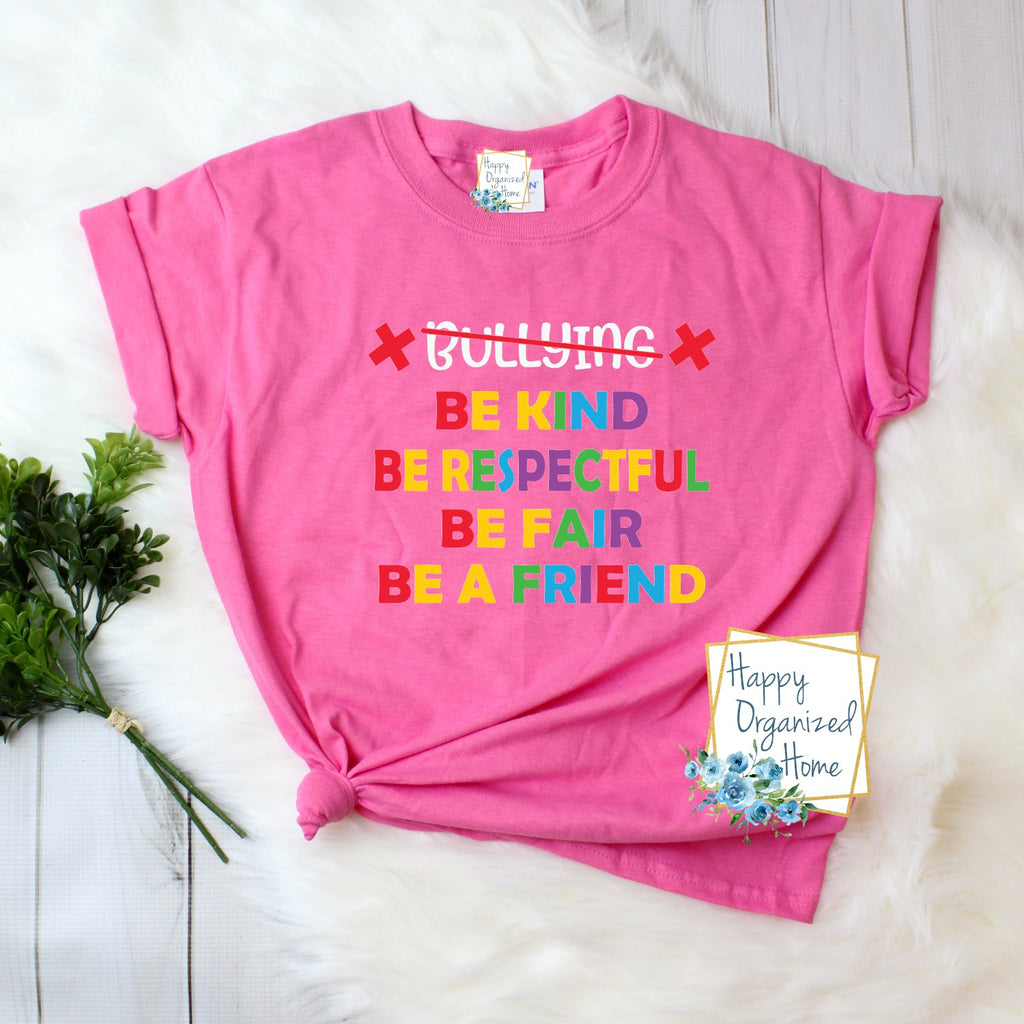 Be Kind Be Respectful Be Fair Be a friend - Pink Shirt Day T-shirt Toddler, Kids and Adult
